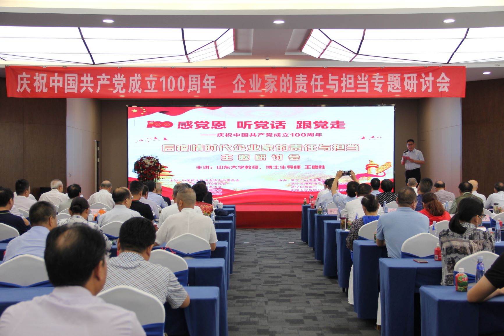 專題研討會(huì)上,濟(jì)寧市國(guó)際國(guó)內(nèi)公共關(guān)系協(xié)會(huì)會(huì)長(zhǎng)、山東大學(xué)濟(jì)寧校友會(huì)理事長(zhǎng)韓宇以《后疫情時(shí)代企業(yè)家的責(zé)任與擔(dān)當(dāng)》為主題進(jìn)行了分享。重點(diǎn)分析了后疫情時(shí)代復(fù)雜多變的國(guó)際國(guó)內(nèi)形勢(shì),剖析我國(guó)的應(yīng)對(duì)策略,強(qiáng)調(diào)了企業(yè)家在經(jīng)濟(jì)發(fā)展中的重要作用,明確了企業(yè)家的責(zé)任與擔(dān)當(dāng)。企業(yè)家在推動(dòng)高質(zhì)量發(fā)展,深化供給側(cè)結(jié)構(gòu)性改革,推動(dòng)改革創(chuàng)新,實(shí)現(xiàn)產(chǎn)業(yè)基礎(chǔ)高級(jí)化、產(chǎn)業(yè)鏈現(xiàn)代化,加快培育完整內(nèi)需體系等方面,肩負(fù)著重要的歷史責(zé)任!弘揚(yáng)企業(yè)家精神,是企業(yè)家實(shí)現(xiàn)責(zé)任和擔(dān)當(dāng)?shù)暮诵呐c強(qiáng)大的動(dòng)力!
